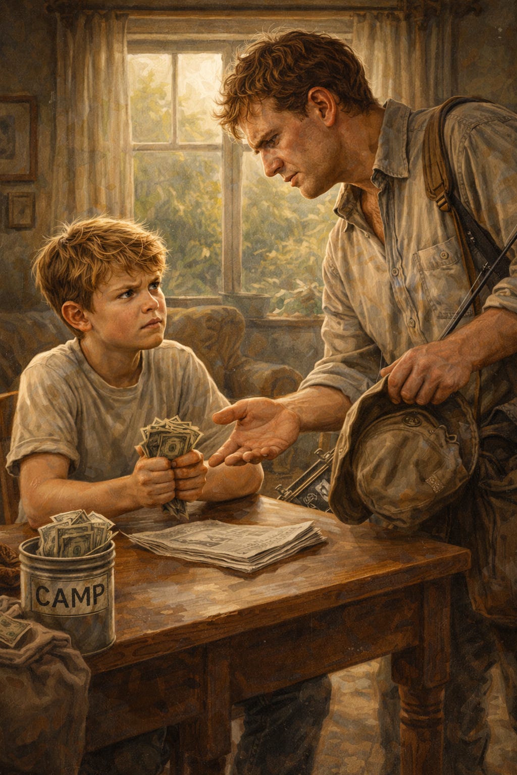 Joe is a 14-year-old boy who wants to go to camp very much. His father promised him he could go if he saved up the money for it himself. So Joe worked hard at his paper route and saved up the $60 it costs to go to camp, and a little more besides. But just before the camp fees came due, his father changed his mind. Joe’s father was short of the money it would cost to go on a special fishing trip with some of his friends, so he told Joe to give him the money he had saved from the paper route. Joe doesn’t want to give up going to camp, so he thinks of refusing to give his father the money.